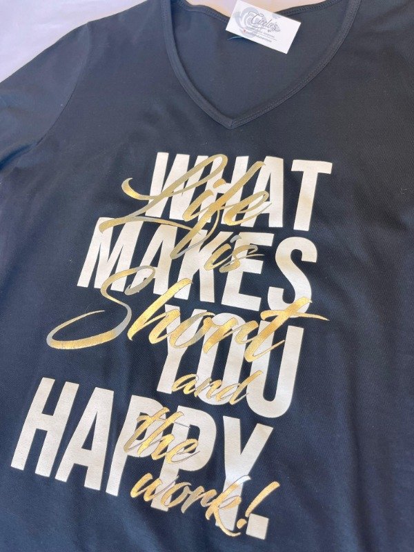 Reme mangas cortas escote v confeccionada en jersey peinado con estampa foil agrega un brillo sutil, ideal para destacar tu look tanto de día como de noche.-