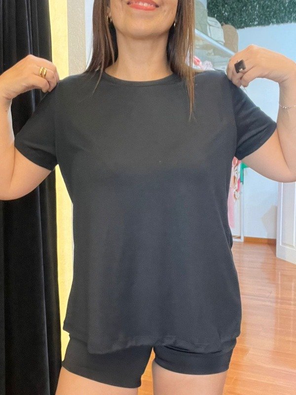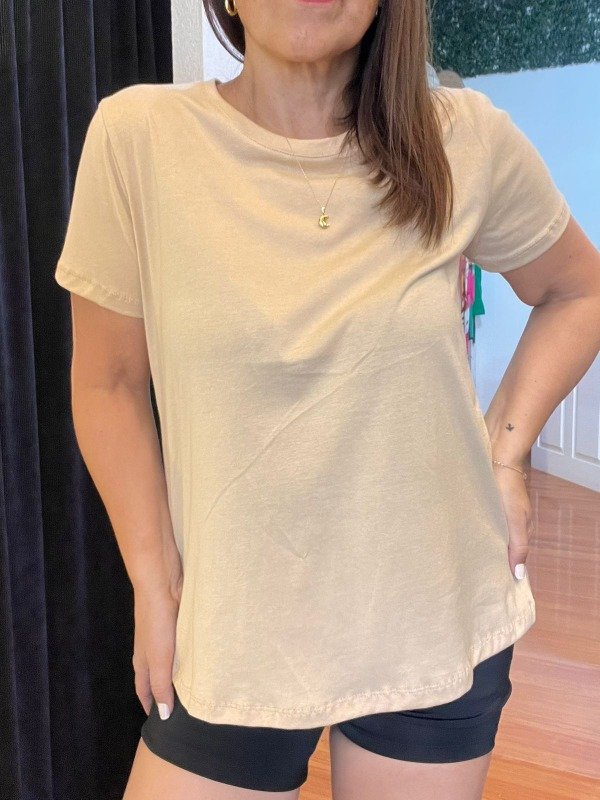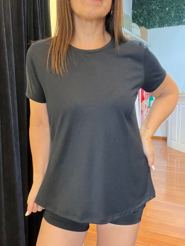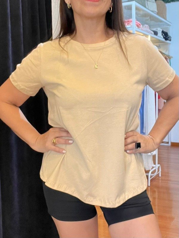 Remera Básica cuello redondo mangas cortas confeccionada en tela Jersey de Algodón contiene poliéster y elastano