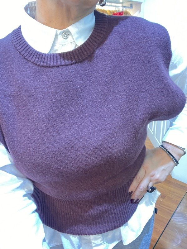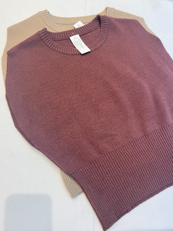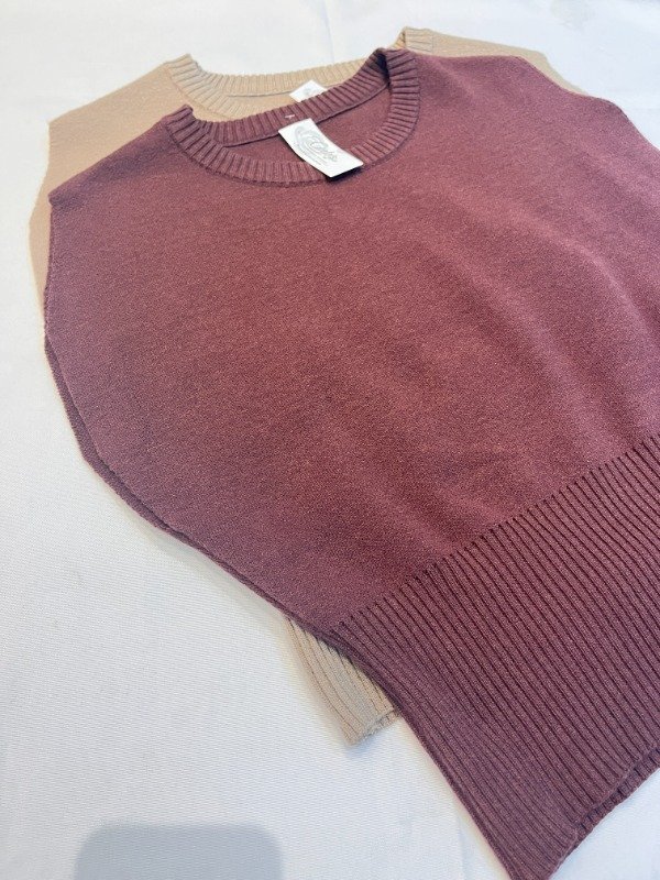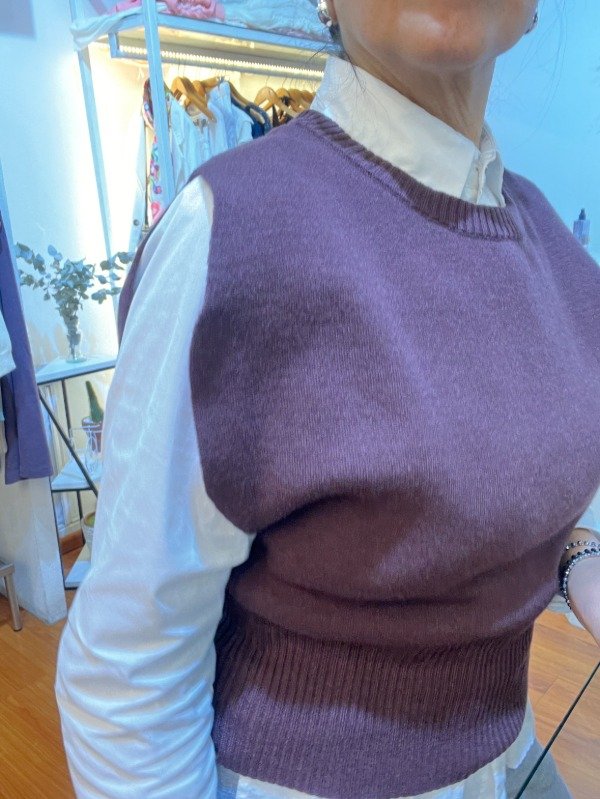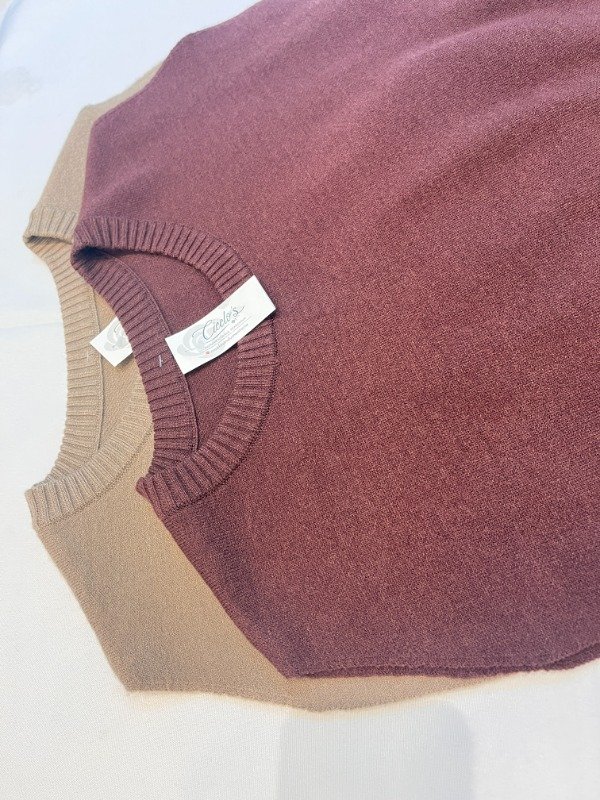 Chaleco cuello redondo con detalle de sisa en corte curva confeccionado con lana bremer tejido doble con spandex talle unico equivalente a talles del 38 al 42