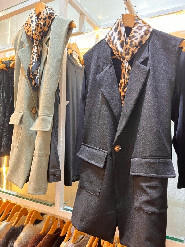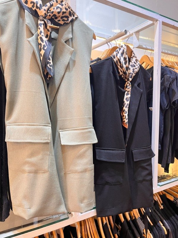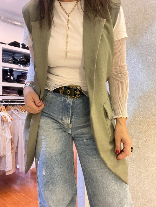 Chaleco largo Sarga — corte recto, un botón , bolsillos frontales. con tapa Tela intermedia de calidad, ideal para usar sobre cualquier look. De la oficina a la salida sin cambiar nada. Combina con todo — jeans, pantalón de vestir, Short o vestido.