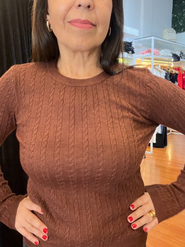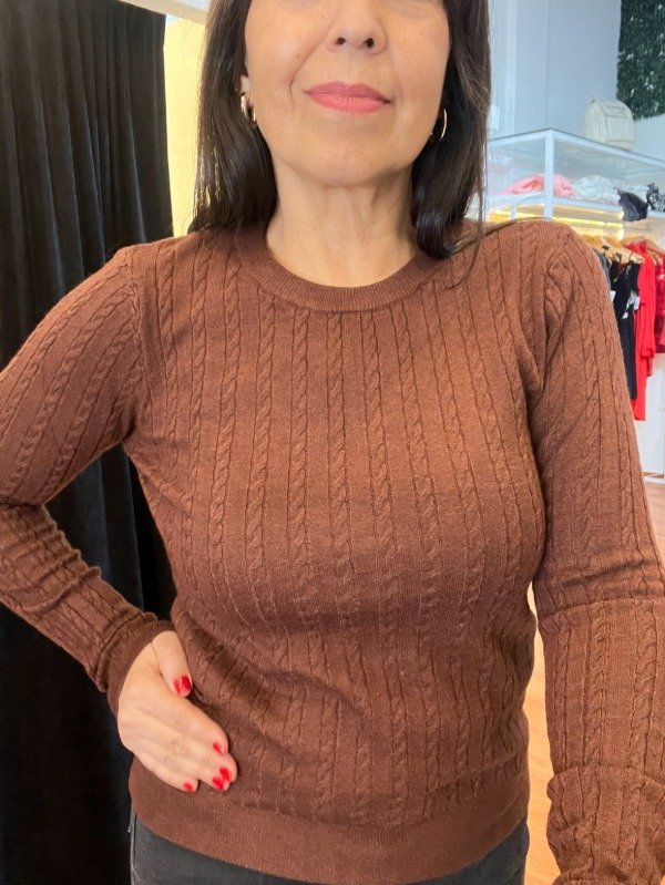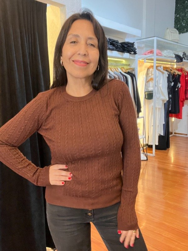 Sweater de hilo bremer,detalle de trenzas,cuello redondo